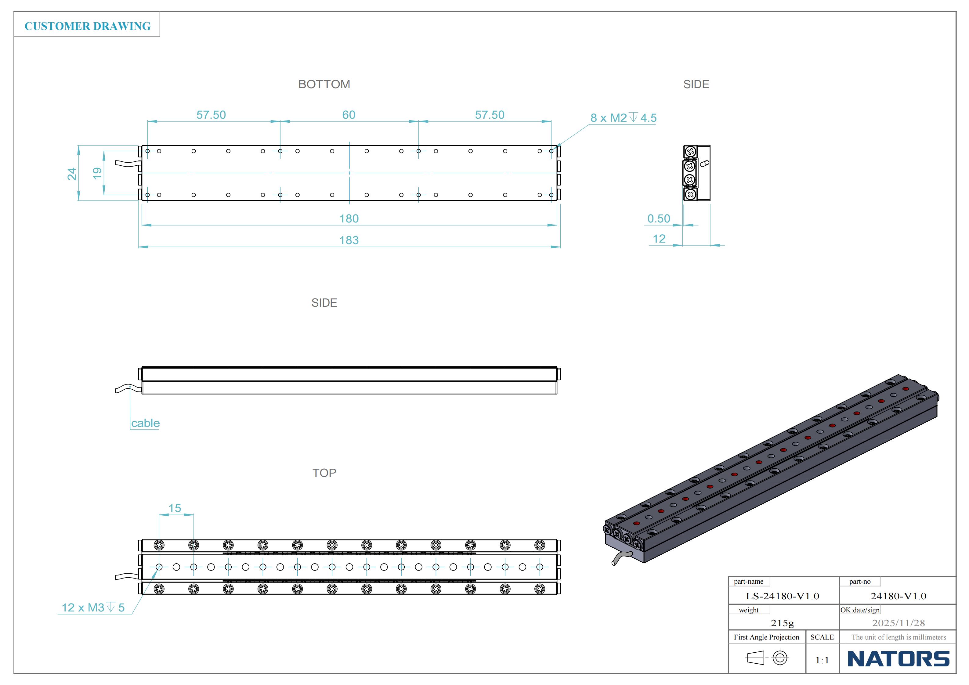 LS-24180的尺寸为180 x 24 x 12mm,行程范围为123mm。